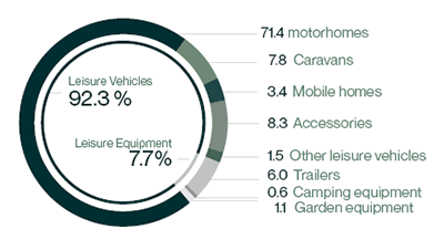 - leisure vehicles (over 90% of sales this year) - caravans, motorhomes, mobile homes and their accessories.